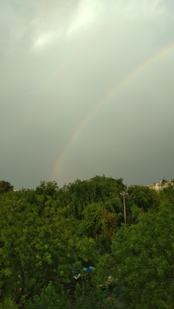 धरती के एक छोर से निकलता हुआ इंद्रधनुष भी दिखता है अपने सातों रंग में,